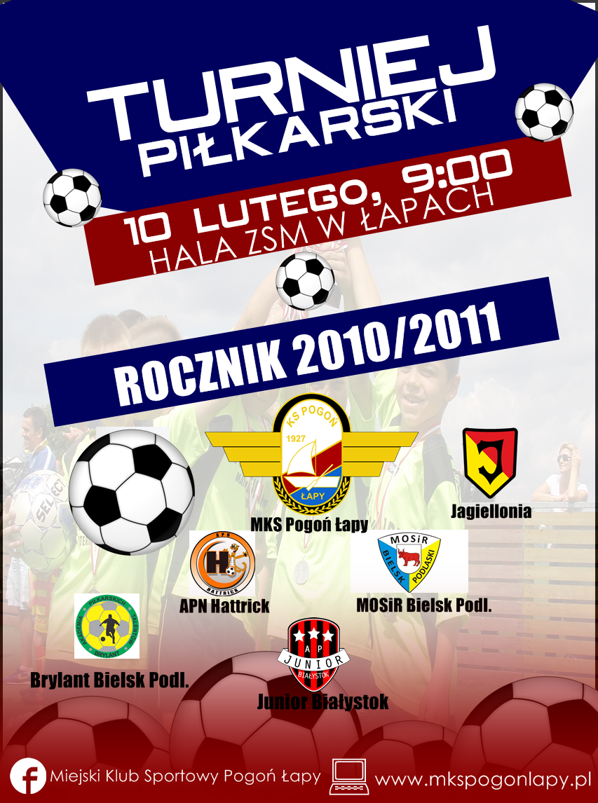 Informujemy, że treningi grupy żaków rocznika 2012/2013 będą odbywać się trzy razy w tygodniu w następujących terminach: Poniedziałek godzina 16:30 Szkoła Podstawowa numer 2 w Łapach Środa godzina 16:00 Szkoła Podstawowa numer 2 w Łapach Piątek godzina 16:30 Szkoła Podstawowa numer 2 w Łapach Zapraszamy!