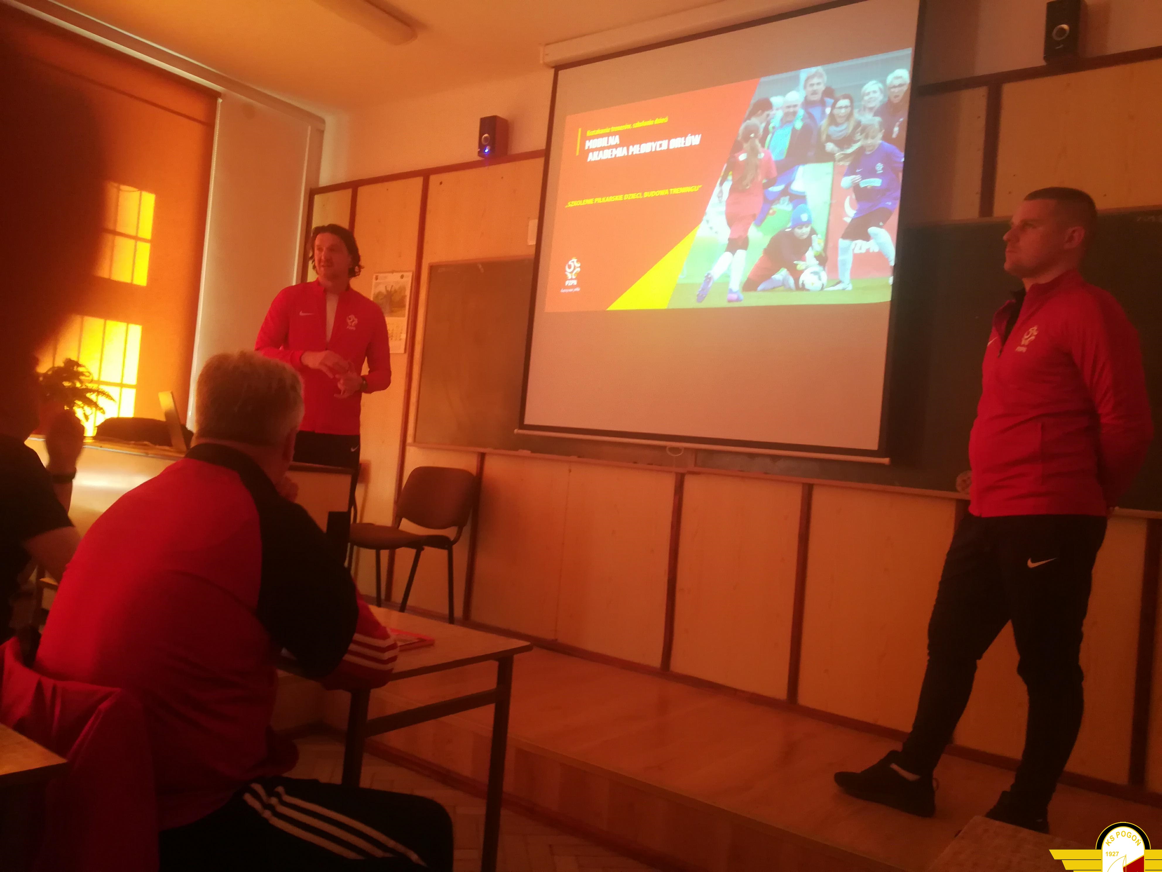 W pierwszej, teoretycznej części zajęć, która odbyła się w Zespole Szkół Mechanicznych, słuchacze mieli możliwość zapoznania się z projektami szkoleniowymi Polskiego Związku Piłki Nożnej, a także poznać podstawowe zasady szkolenia piłkarskiego dzieci i młodzieży.